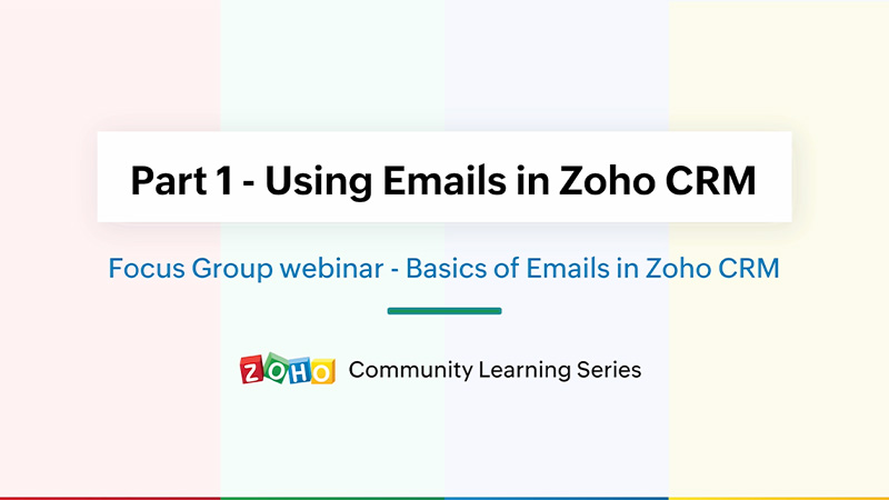 [Zoho CRM Webinar] Automate & Track Your Customer Journeys with CommandCenter 2.0 Automate Everything across Customer Journeys in CommandCenter 2.0 Zoho CRM Webinar - Canvas Tutorial on Redesigning User Experiences Focus Group Webinar - Setup Wizards in CRM for Simplified Record Creation Zoho CRM Webinar - Streamline Frequent Processes with Kiosk Studio Zoho CRM Webinar - Automate sequential actions through Cadences Webinar - New feature enhancements in Zoho CRM Q2 2024 Focus Group Webinar - Navigating the real estate market with the power of Zoho Survey Focus Group Webinar - Optimize business decisions with Zia in Zoho CRM (Part 2) Focus Group Webinar - Zoho FSM Product Tour Focus Group Webinar - Use Blueprint and CommandCenter together for Business Process Automation Focus Group Webinar - Parallel and Multiple Transitions in Blueprint Focus Group Webinar - Zoho CRM's Configure Price Quote [CPQ] Focus Group Webinar - Optimize business decisions with Zia in Zoho CRM (Part 1) Focus Group Webinar - Streamlining Marketing Campaigns with Zoho LandingPage Focus Group Webinar - Mobile Application Analytics and Performance Monitoring with Zoho Apptics Focus Group Webinar: Zoho CRM Mobile App - A Walkthrough Focus Group Webinar - Zoho CRM Dashboard Components that you can leverage Zoho CRM Webinar - New functionalities in customizing modules Zoho CRM Webinar - New functionalities in Forecasts, Analytics, and Domain Mapping Focus Group Webinar - Integrating Zoho Forms with Zoho CRM Focus Group Webinar - Introduction to Zoho Apptics Focus Group Webinar - Boost your sales engagement efforts with Zoho CRM and Zoho Bookings Focus Group Webinar - Advanced and New Email Configurations in Zoho CRM Focus Group Webinar - Integrating Zoho CRM with Zoho Campaigns Focus Group Webinar - Basics of emails in Zoho CRM Focus Group Webinar - Integrating Zoho Books and Zoho CRM Focus Group Webinar - Integrating Zoho CRM and Zoho Analytics Focus Group Webinar - Revamped reporting in Zoho CRM Focus Group Webinar - Sales Forecasting in Zoho CRM Integrating Zoho Desk with Zoho CRM Multiple Sandbox and newer Sandbox enhancements Revamping your Sales Strategy for the new year with Zoho CRM Part 1 - Zoho CRM's Blueprint 3.0 A Focus Group webinar series. Part - 3 - Widget for Zoho Projects A Focus Group webinar series. Part - 2 - Widget for Zoho Desk A Focus Group webinar series. Part - 1 - Widget for Zoho CRM Building customer intelligence with Zoho CRM's Zia for emails, assignment and workflow suggestions Building customer intelligence in Zoho CRM - Zia Prediction Builder, Recommendations and Validation Building customer foundation with Zoho CRM - Signals, Call customization, Calls and emails workflows Building customer foundation with Zoho CRM - Wizards, Multiple Sales Pipelines and Review Process Building customer insight with Webform Analytics and A/B testing, Cohort and Quadrant Analysis Building customer insight with Zoho CRM's Segmentation and Marketing Attribution Building customer experience with Zoho CRM's CommandCenter Zobot 101 - Part 6 - Build a Zobot with Zia Skills Zobot 101 - Part 5 - Build a Zobot with Watson Zobot 101 - Part 4 - Build bot using Zoho's SalesIQ and Dialogflow Zobot101 - Part 3 - Building a Zobot using SalesIQ's script - Advanced Zobot 101 - Part 2 - Build a Zobot using SalesIQ Scripts - Basics Zobot 101 - Part 1 - Introduction to SalesIQ and Zobot Focus Group - Admin best-practices to use Zoho CRM Functions101 - More on Zoho CRM functions Functions101 - Getting started with Zoho CRM functions Functions101 - List & Map Functions101 - Beginner Series Focus Group: Webinar on What's new in Zoho CRM. Focus group: Personalize a view in a module using Canvas view. Focus Group: Enhanced features in customizing Zoho CRM. Focus Group: Epics in Zoho Sprints Focus Group: Setting up SalesInbox, guide and tips.